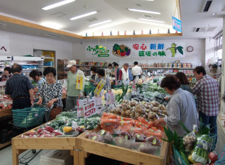 ふれあいパーク八日市場は、匝瑳市の農特産物や植木を即売する地域交流施設。年間を通じて旬の食材が取り揃えられ、地域住民からも親しまれています。食材をそのまま販売するだけでなく、お菓子や調味料といった加工品もあり、中でも手作りの太巻きや厚焼き卵が人気です。