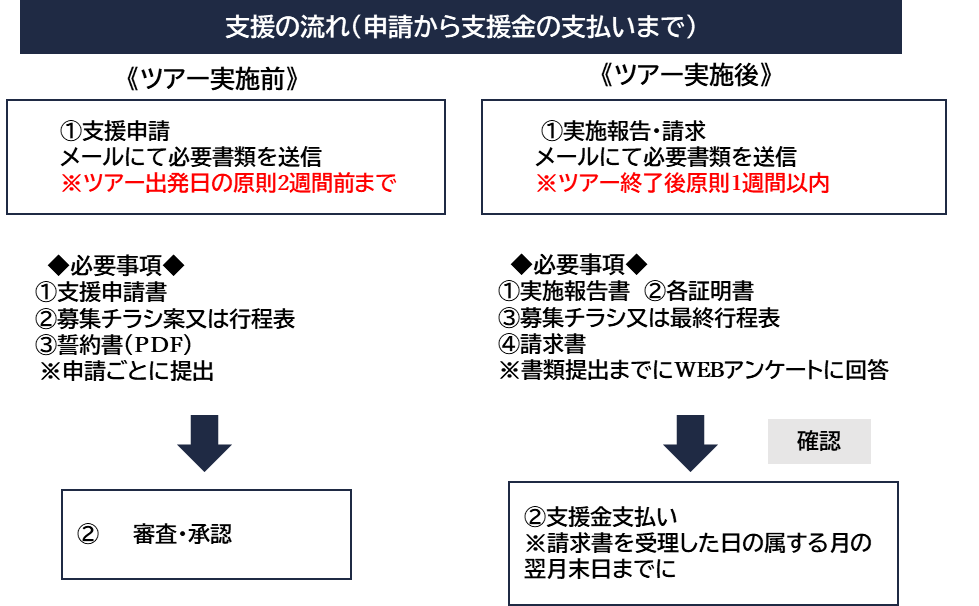 ※申請ツアー数に上限はありませんが、原則として、各事業所1期につき催行されたツアーのバス2台分までを支援します。