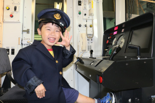 ○僕も私も運転士(制服記念撮影) …制服(お子さま用)を着て運転席に座れば、気分はホンモノの運転士!?