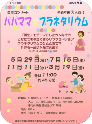 ●ひよこプラネタリウム(約30分間) 観覧料:大人200円 高校生以下無料