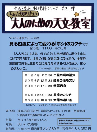 ●ちょっと知りたい大人のための天文教室(約60分間)
