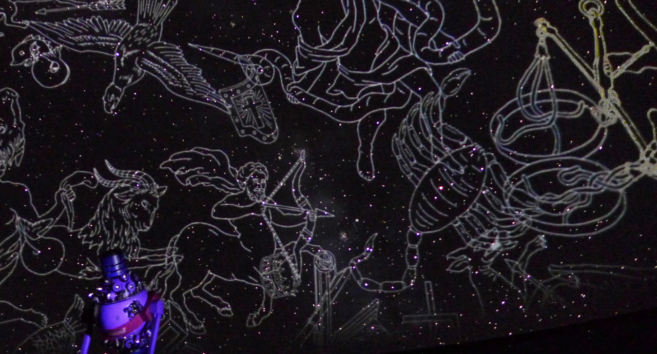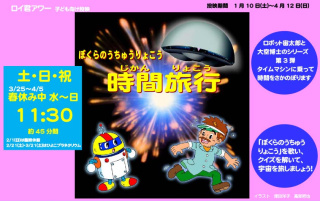 発明好きの大空博士と助手ロボットの宙太郎と一緒に、博士が作ったタイムマシンで時間をさかのぼります。宇宙の始まりを見に行きましょう。季節の星座もご紹介します。