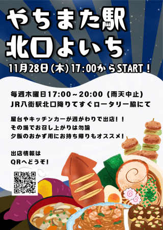 毎週木曜日に、八街駅北口広場(八街駅北口ロータリー脇)で開催している『やちまた駅北口よいち』。