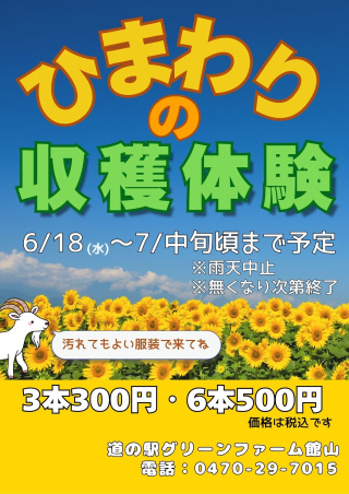 道の駅グリーンファーム館山では「ひまわりの収穫体験」を開催しています!