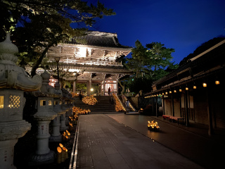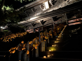 日蓮聖人ゆかりの地・誕生寺をやさしく照らす、竹灯篭の幻想的な光。
