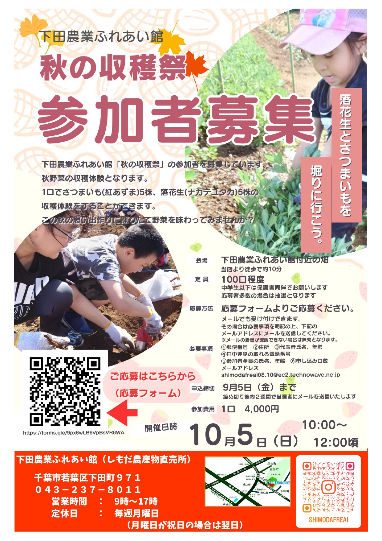 下田農業ふれあい館では、「秋の収穫祭」の参加者を募集しています。