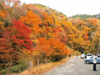 国道465号筒森地先から細い道路を1キロメートル程入ると、道路の両脇には数多くのもみじがあります。