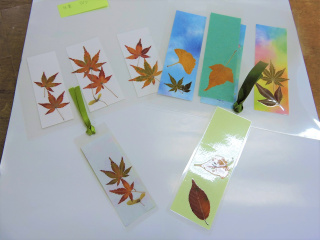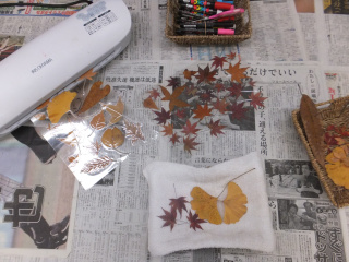 紅葉をラミネート加工して、さまざまな小物づくりを楽しみます。あらかじめ押し葉にした紅葉もご用意していますが、ご自身で拾った葉を使って加工することも可能です。