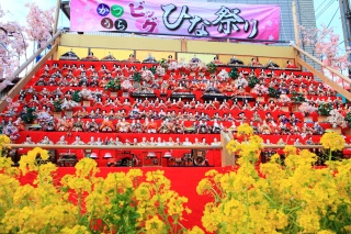 また、特設ひな壇が設けられ、覚翁寺山門前には約600体、墨名交差点には約1,000体のひな人形が飾られます。