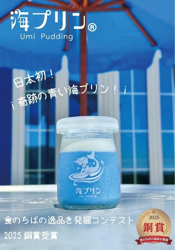 東京オリンピックのサーフィン競技開催地“サーフタウン”一宮町で生まれた日本初の奇跡のとろける青い海プリン。海の青と砂浜の白をイメージし、一年半かけて誕生しました。濃厚な味わいと滑らかな口当たりの王道プリンは、「食のちばの逸品を発掘2025」で銅賞を受賞した逸品です。