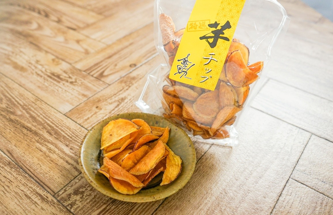 千葉県産のさつまいもにこだわり、薄すぎず厚すぎず、独自の方法でスライス。カリッとした食感と芋の甘み、香りを楽しめます。メディアでも取り上げられた、一度食べ出したら止まらないチップスです。