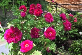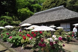 花びらを何枚も重ねた大輪の花を咲かせる、別名「富貴花」「花王」などと呼ばれる牡丹。茂原牡丹園では、入園口の長屋門をくぐると、里山を背景にした茅葺きの古民家の前に色とりどりの優美な牡丹が咲き誇る庭園が広がります。5,000m2の園内には、200種・2,000株の牡丹が栽培されており、同じ時期に開花する芍薬、シャクナゲ、コデマリ、オオデマリ、ツツジ、ハナミズキ、珍しいハンカチの木など、色とりどりに咲き誇る、春爛漫の庭園を満喫できます。茅葺きの母屋は1730年、長屋門は1837年の建造。千葉県内の数少ない民家の一つとして、国の登録有形文化財に指定されています。綺麗な牡丹を鑑賞するには、涼しい朝方や夕方がおすすめです。