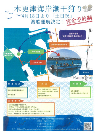木更津中の島公園行き「渡船運航」/木更津海岸潮干狩り場
