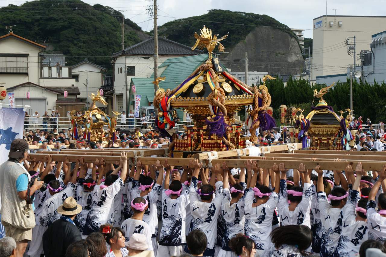 鴨川市街地を中心とする神社7社の鴨川地区最大の合同祭です。山車3台・屋台4台・神輿7基のほか、市指定無形民俗文化財の担ぎ屋台が市街地を賑やかに練り歩きます。また、鴨川シーサイドベース周辺にて露店の出店もあります。