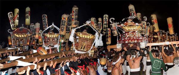 祭りのクライマックスでは、天神社に参集した長者地区の神輿に中根地区の神輿が加わり、別れを惜しむ「大別れ式」が執り行われます。