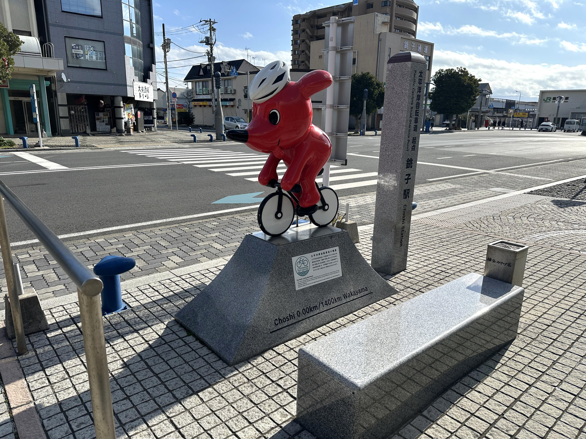 その壮大なプロローグを飾るのが、銚子駅前に佇む可愛らしいチーバくんのモニュメントです。