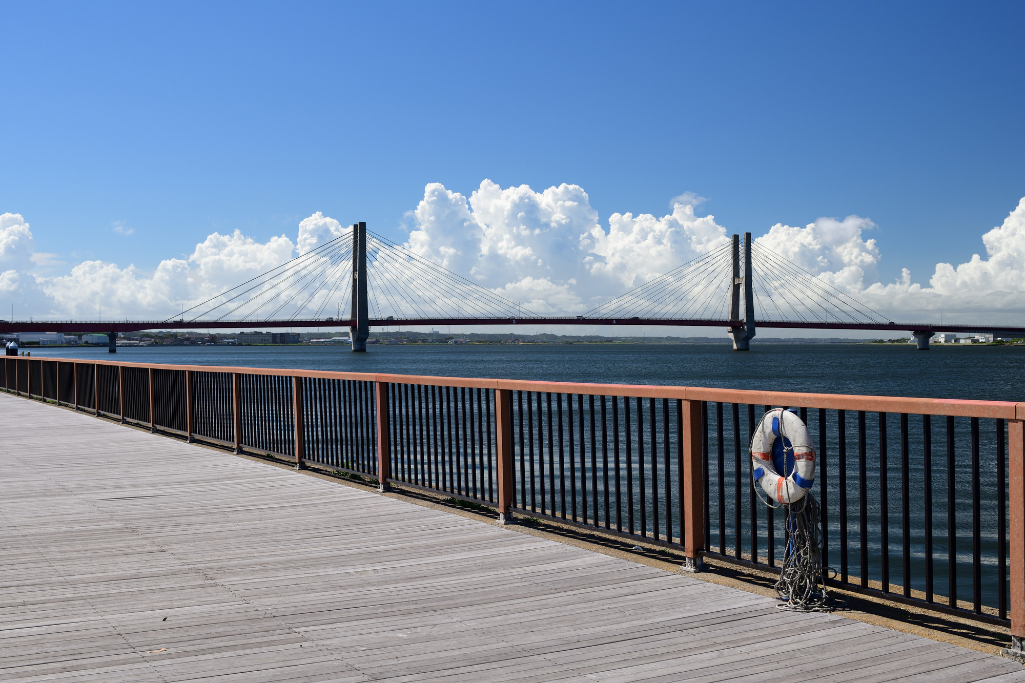 川面を渡る風を感じながら、対岸に広がる茨城県神栖市を見渡せる開放感が魅力です。