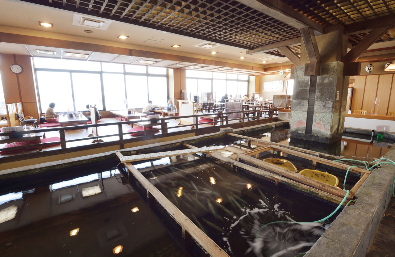 店内に一歩足を踏み入れれば、汲み上げた海水をろ過した大きな生け簀が迎えてくれます。