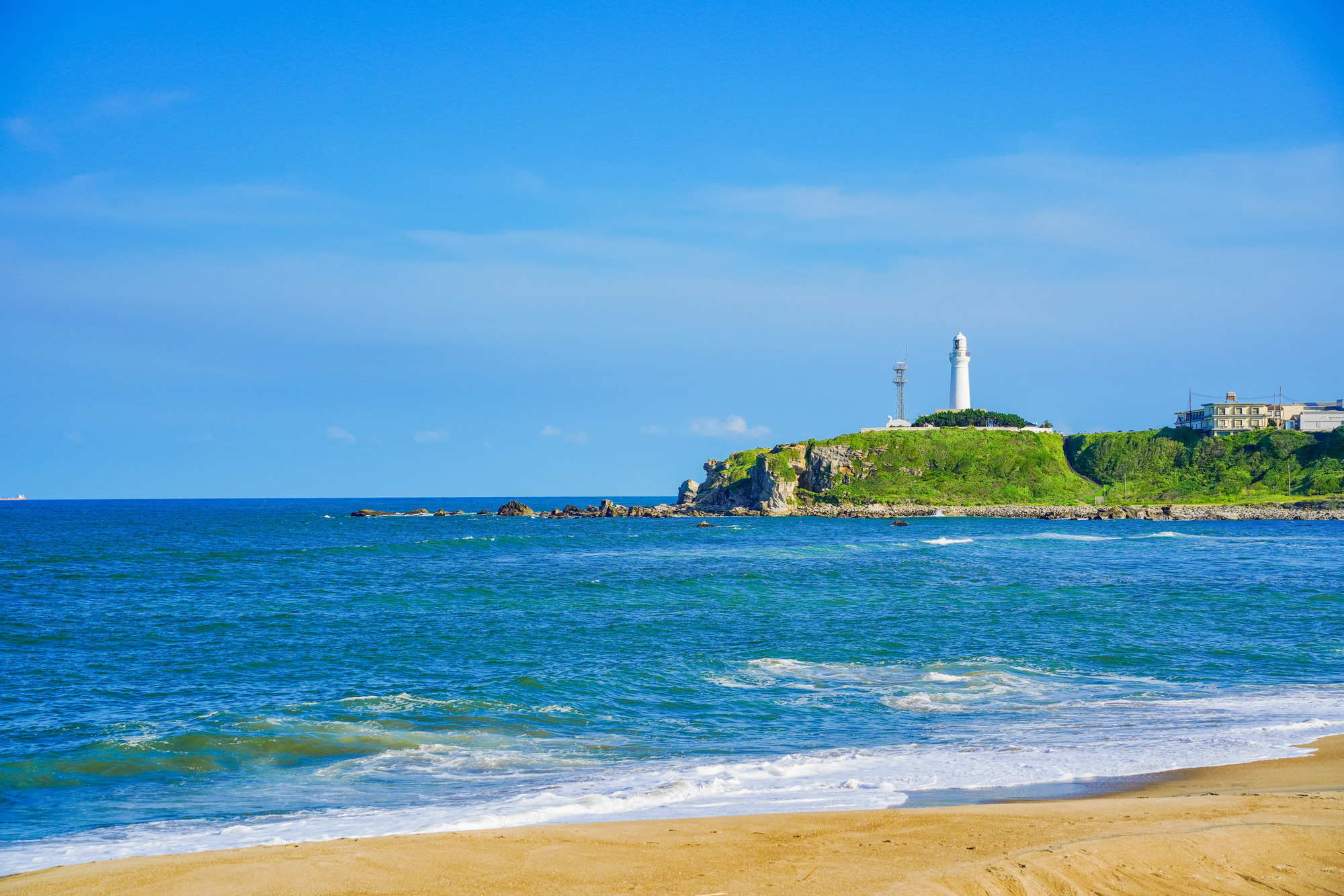 銚子半島の最東端、太平洋に突き出た犬吠埼に立つ白亜の灯台。