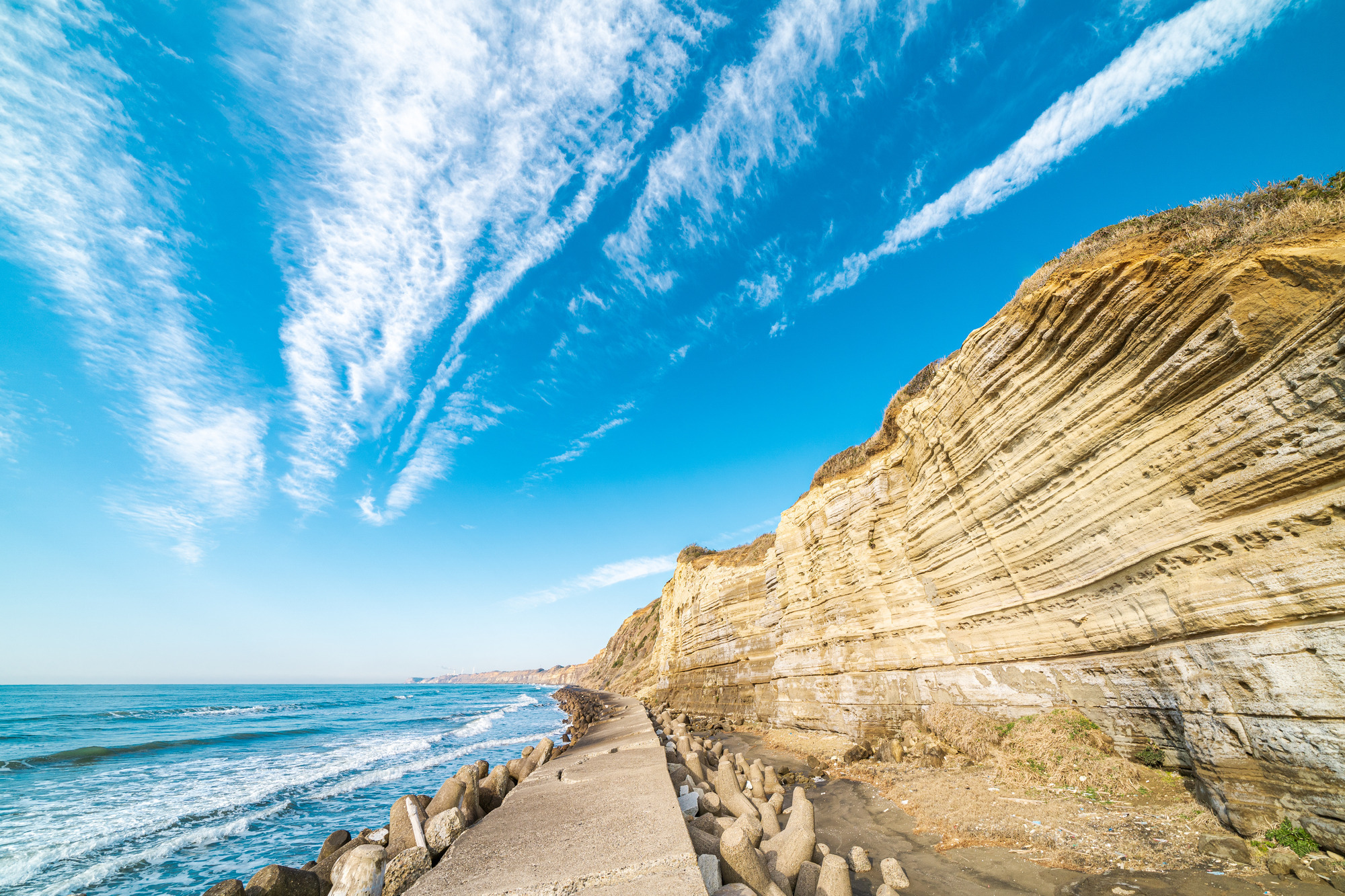 その切り立った姿から「東洋のドーバー」とも称され、銚子市から旭市にかけてダイナミックな景観が続きます。