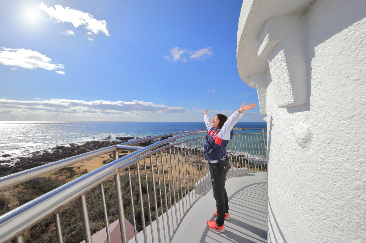 全国に16しかない「登れる灯台」の一つで、らせん階段を登った先の展望台からは、太平洋の大パノラマを一望。