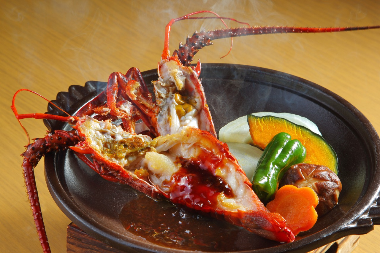 豪快な舟盛りや郷土料理のなめろうに加え、貝や伊勢海老を卓上で焼く「浜焼き」は、磯の香りが食欲をそそる人気メニューです。