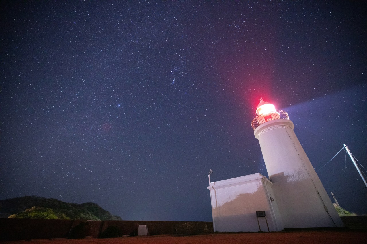夜には灯台の光が海を照らし、見上げれば満天の星が空一面に広がります。