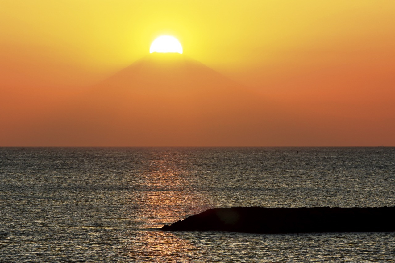 5月と7月には、富士山頂に夕日が沈む神秘的な「ダイヤモンド富士」を拝めるチャンスも。