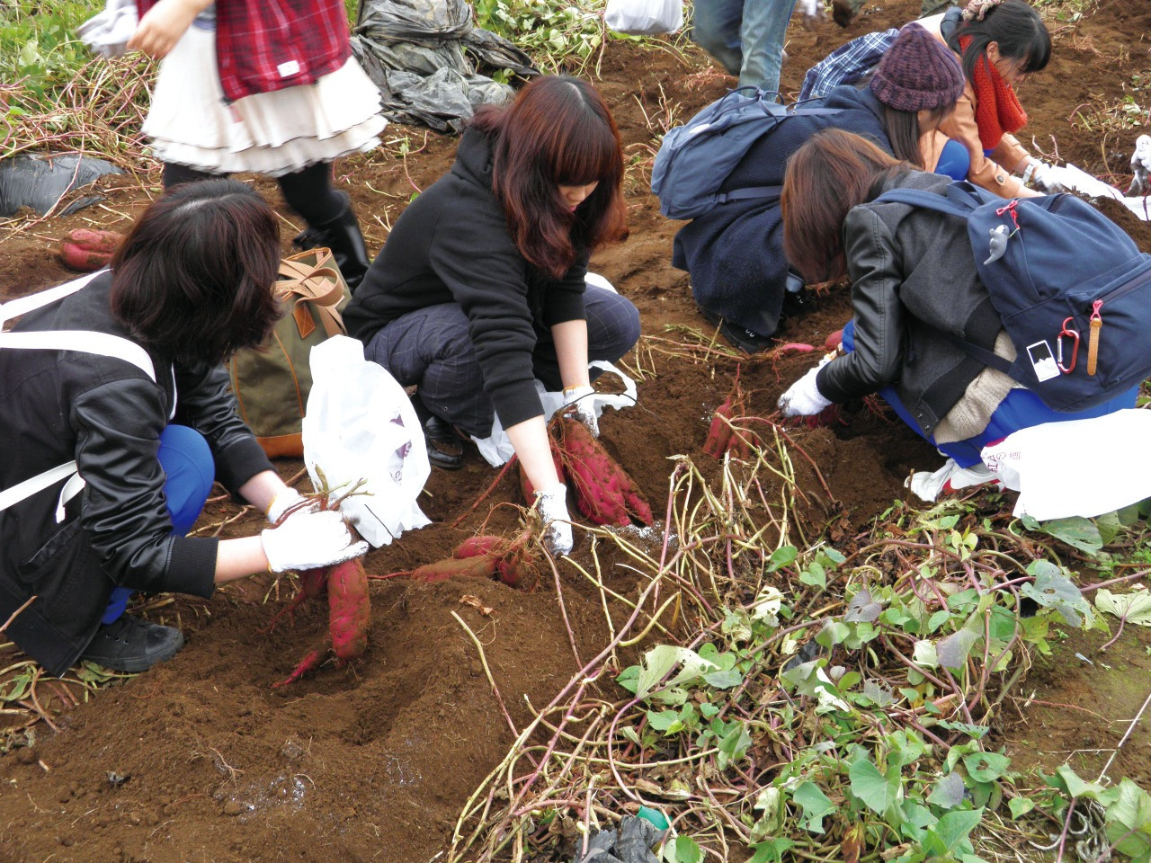 直売所には朝採れ新鮮野菜や特産物が並び、なかでも栗源特産のサツマイモ「紅小町」は必食。