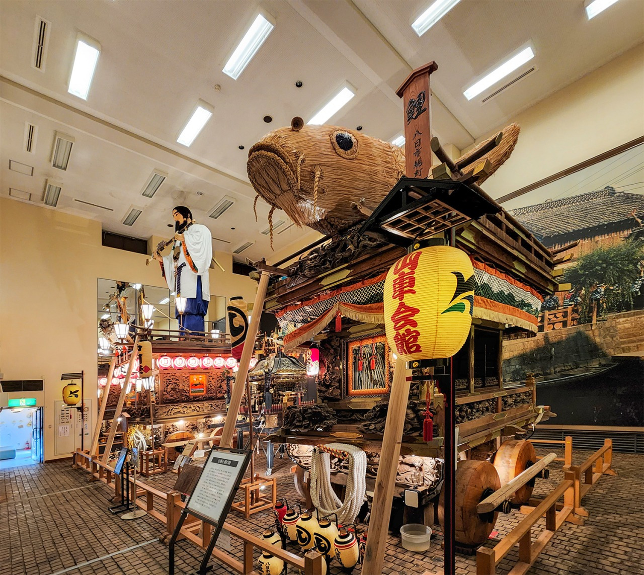 1階では、豪華絢爛な山車と臨場感あふれる映像が、祭りの熱気を鮮やかに再現しています。2階にはお囃子の楽器や精緻な山車彫刻が並び、職人たちの至高の技を間近に堪能。3階に鎮座する、圧倒的なスケールの「日本一の大人形」は圧巻で、毎年入れ替わる展示内容は、訪れるたびに新しい驚きと感動を与えてくれるはずです。