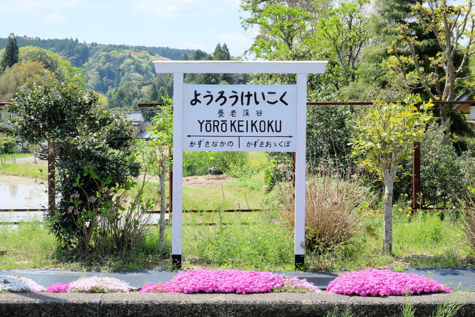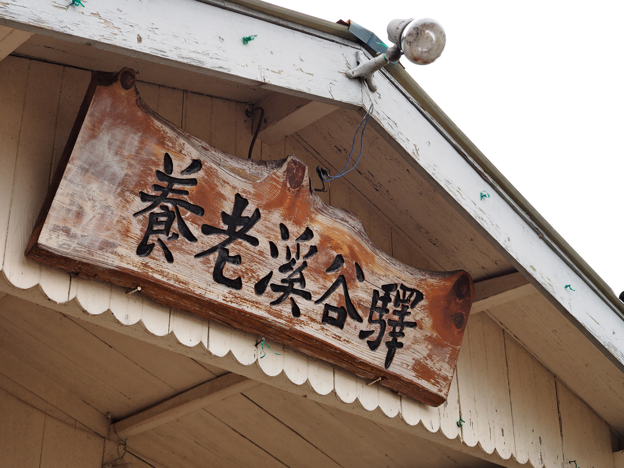駅舎を出たら、ぜひ後ろを振り返ってみてください。旧字で書かれた「養老渓谷驛」という味のある看板も撮りどころです。