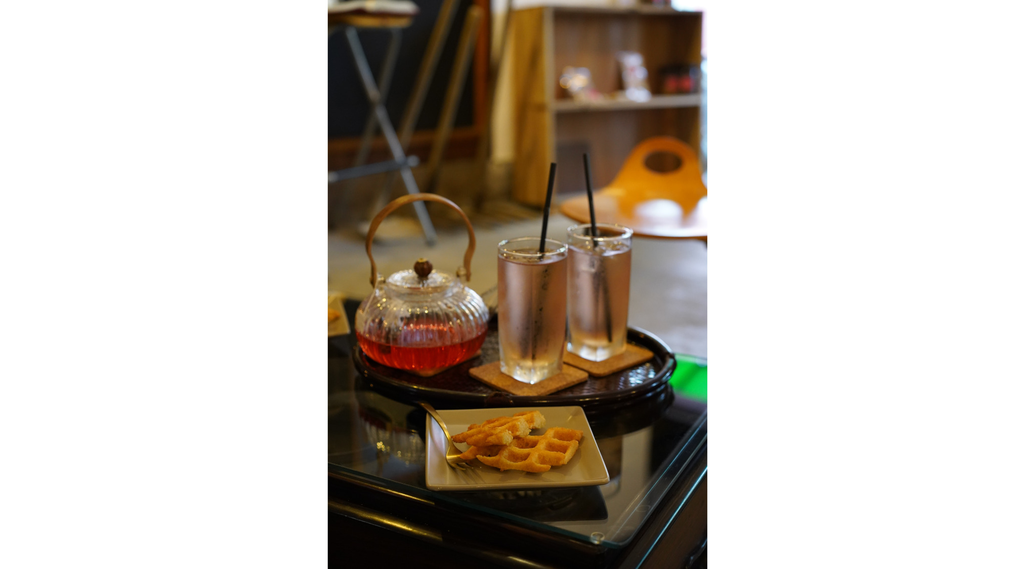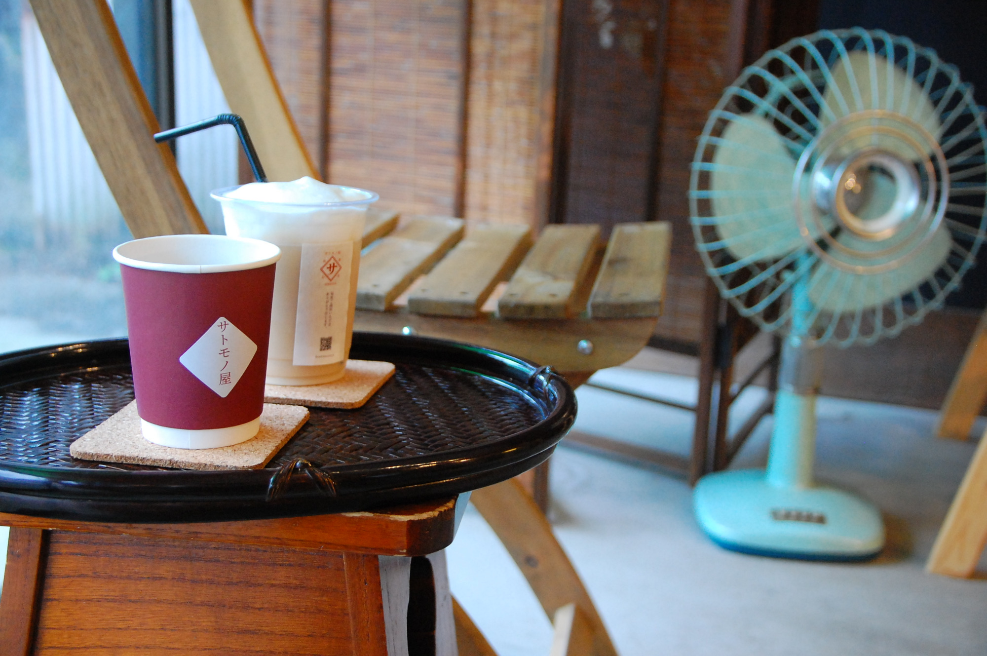 中心部に出発する前に、養老渓谷駅から徒歩1分の場所にある「サトモノ屋」で腹ごしらえしましょう。こちらはヨガ講師の店主が営む「里に出会えるカフェ」。古民家をリノベーションした店内には、近隣の林から運ばれた切株をそのまま使ったテーブルや、改装前から残されていた家具など、このエリアに古くから息づく品々がレイアウトされています。アンティークな魅力を宿すインテリアの数々は、主役にも背景にもなる魅力的な被写体です。