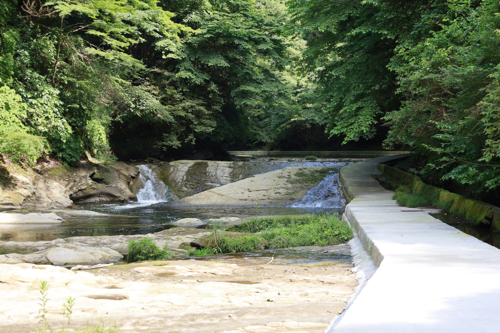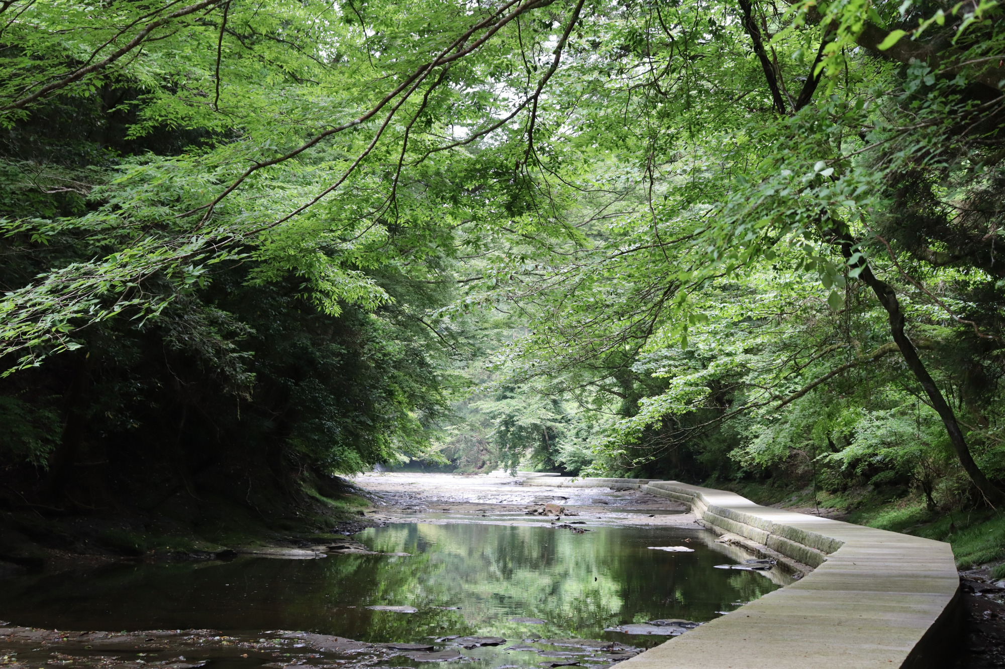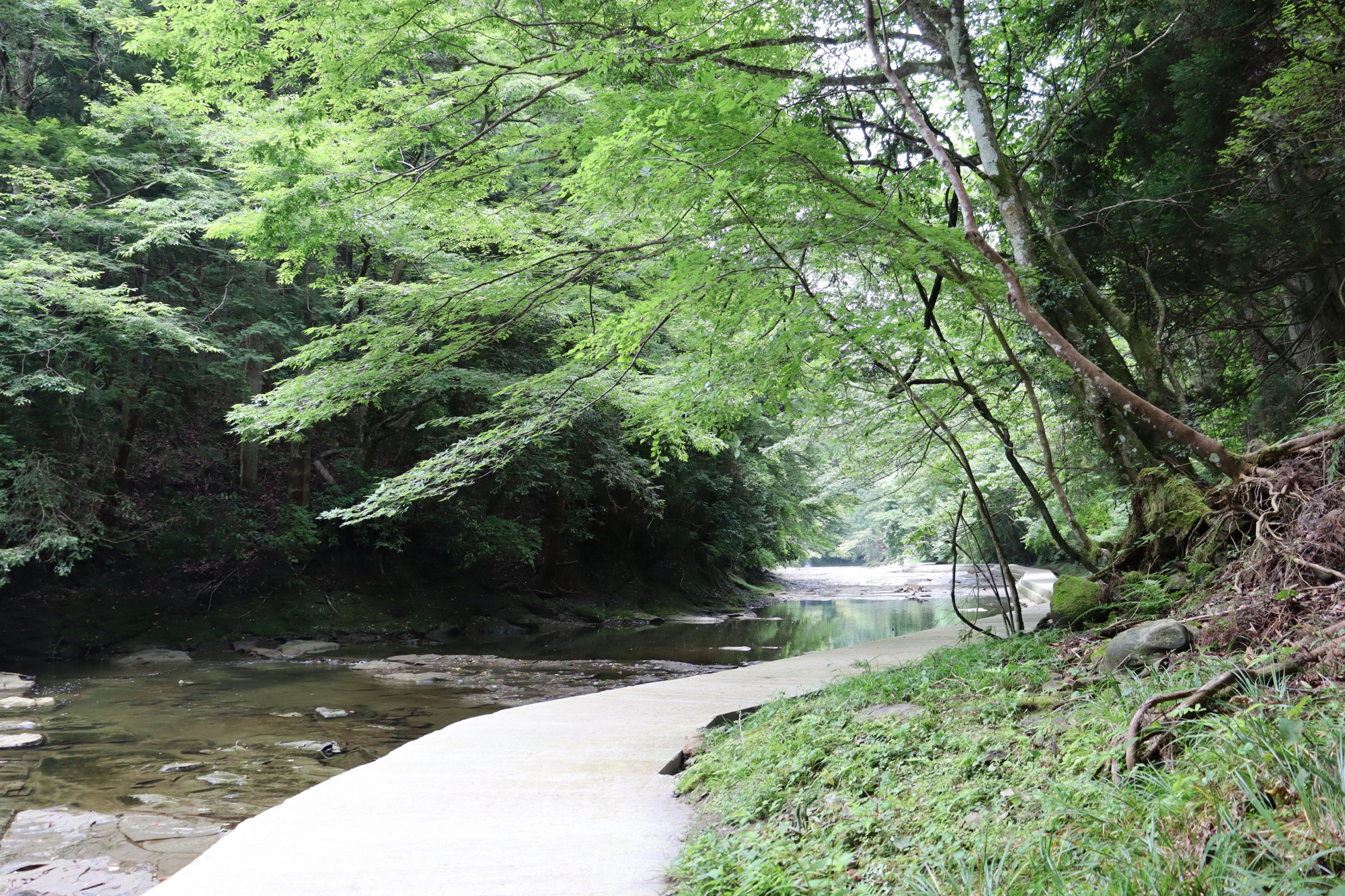静けさに包まれて歩く、清流沿いの散策路