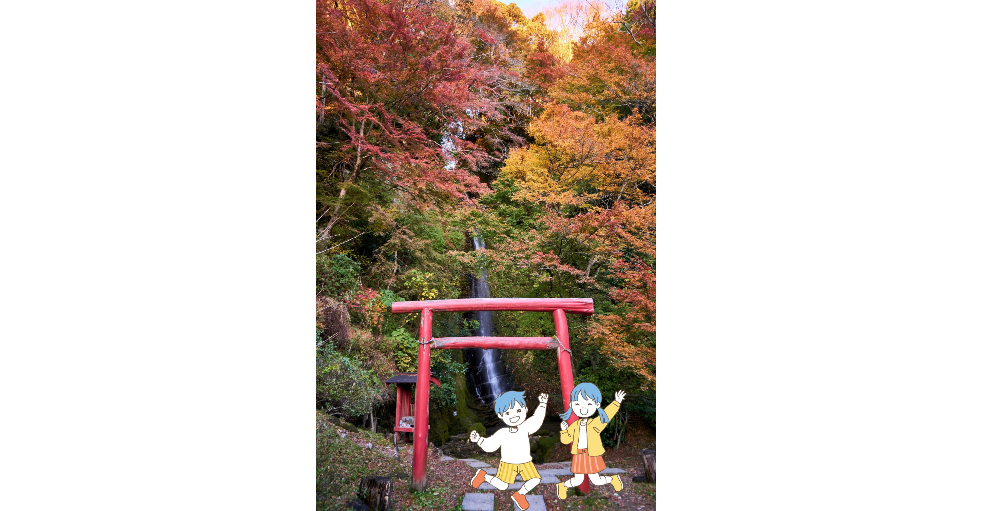 ゴールの金神の滝は、朱塗りの鳥居によって護られており、どこか神秘的な雰囲気。周囲の岩壁には「水の神」「太陽の神」「土の神」の三柱の神様の石像が祀られています。自然の恵みとご利益を感じられる、養老渓谷随一のパワースポットです。