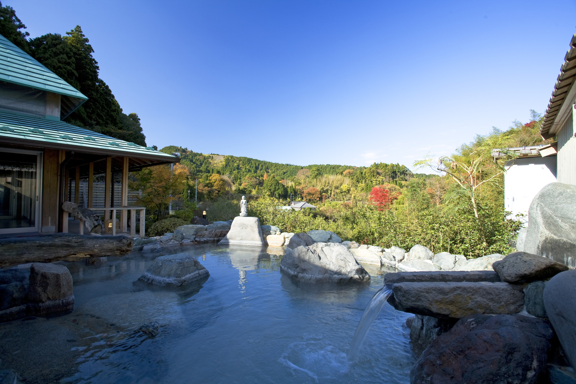 盛りだくさんの旅も終盤。最後は日帰り温泉「ごりやくの湯」で、疲れた身体を癒しましょう!養老渓谷には各旅館や施設に源泉がありますが、成分や効能は少しずつ異なっています。「ごりやくの湯」で湧出する温泉はメタケイ酸を含んでおり、肌に優しいと評判です。