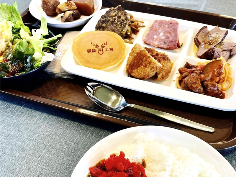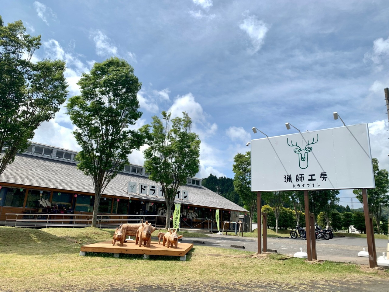 猟師工房ドライブインは、野生鳥獣の100%利活用を目指すジビエのテーマパークで、2023年に君津市へ移転オープン。ジビエ料理が60分食べ放題のビュッフェレストランを併設し、食肉以外にもペットフードや工芸品の販売を行っています。素材の魅力と命の大切さを体感できる施設です。