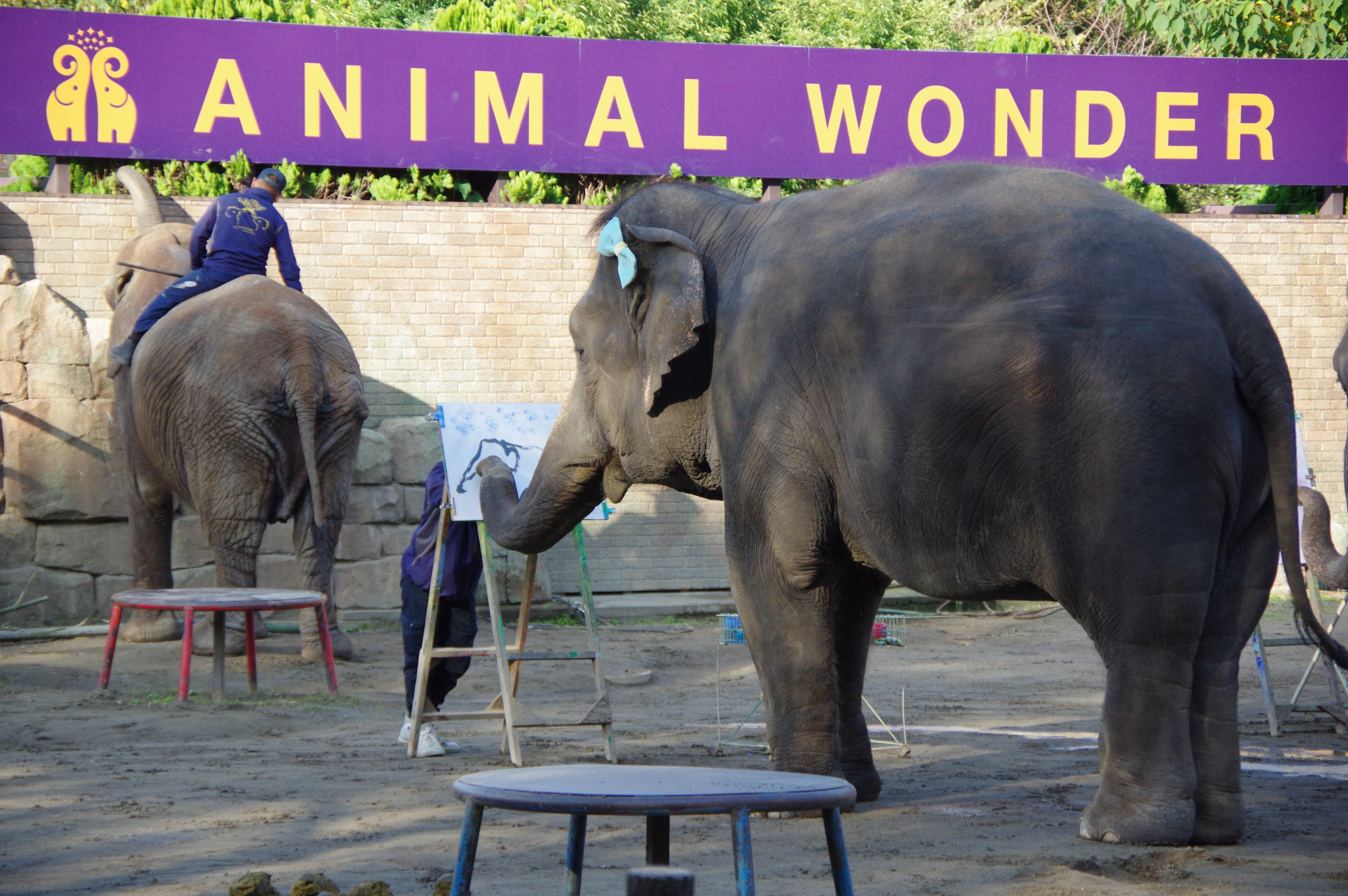 ぞうさんが普段行っている基本行動をベースにしたプログラムですが、サッカーやダンスを披露したり、長い鼻を器用に使って絵を描いたりと、その知能の高さと愛らしい仕草には驚かされるばかり。それぞれのぞうさんの名前や年齢、性格や特技なども楽しくガイドしてくれるので、ぞうさんへの理解や愛着も深まります。