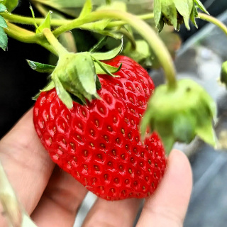 太陽の光が差し込む昼間は、自然光の中で真っ赤に実ったいちごを味わう“王道のいちご狩り”。
