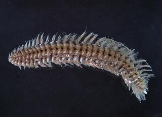ゴカイの仲間で、平たくなった体の両側に束になった剛毛が並んでおり、この部分が人を刺します。岩の裏などに隠れています。